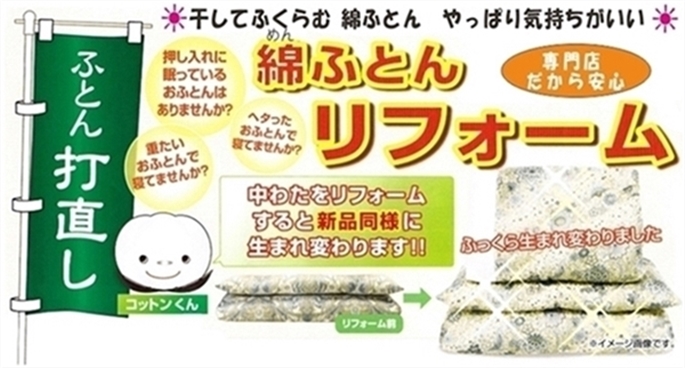 - 敷ふとんを1枚打ち直しして、座布団が5枚できます。